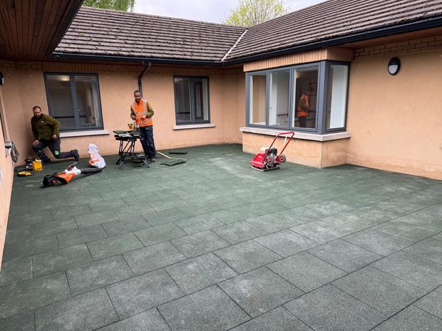 We supply and install rubber safety tiles for patios and outdoor seating areas. Designed specifically for care environments, these surfaces significantly reduce the risk of slip and fall injuries, are comfortable and forgiving underfoot, drain freely and require minimal maintenance. This is one of the most impactful improvements a nursing home can make to its outdoor spaces.